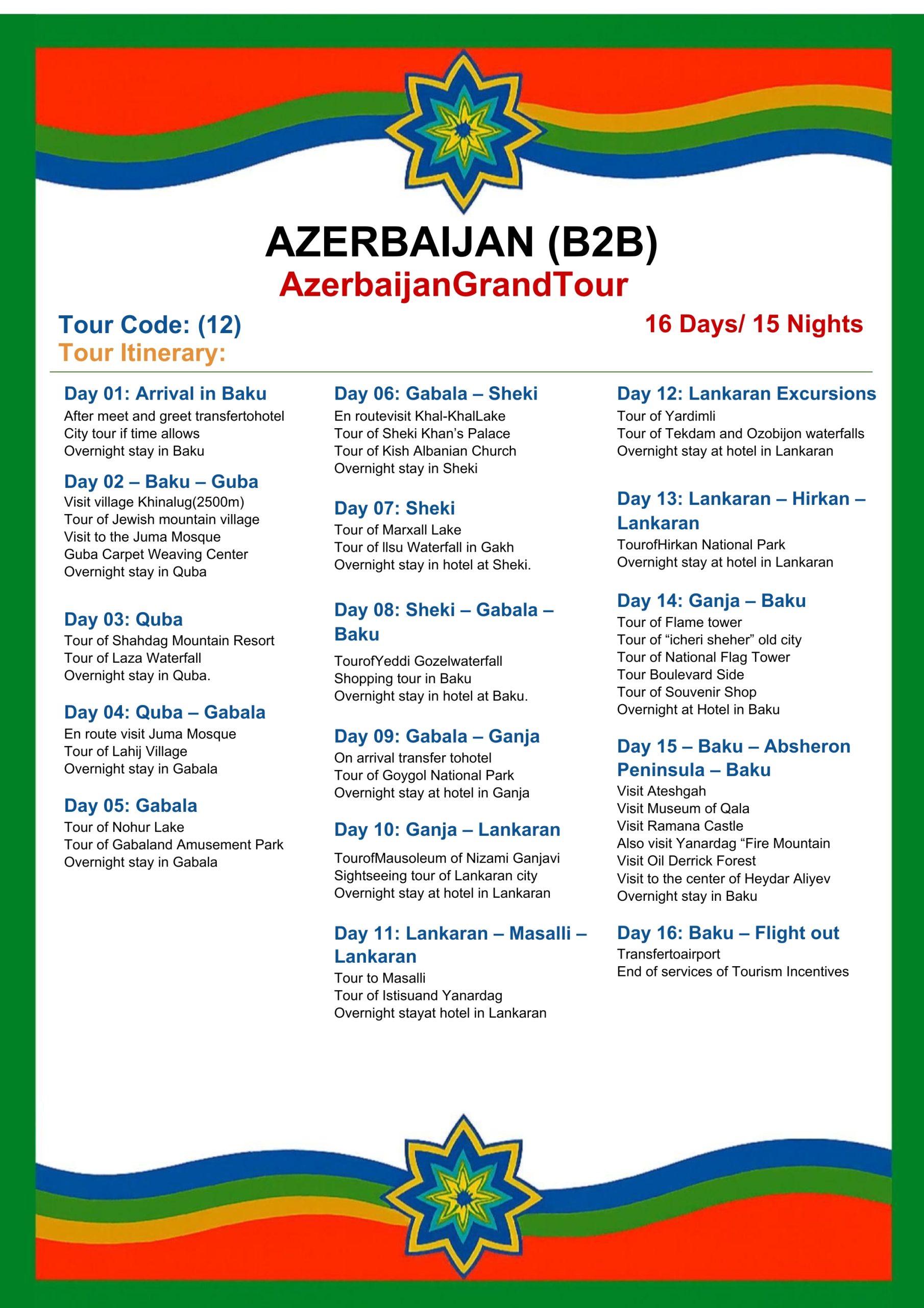 Azerbaijan Tourism Incentives for B2B Tour Operators