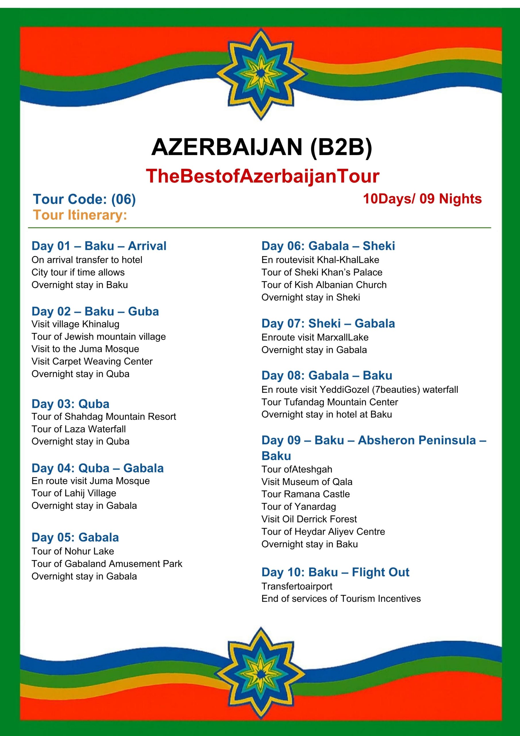 Purpose: attract global inbound operators and travel agents to channel their clients into Azerbaijan by offering strong margins, secure allotments, and cobranded marketing support — while ensuring seamless ground operations and high service quality. . . Read More